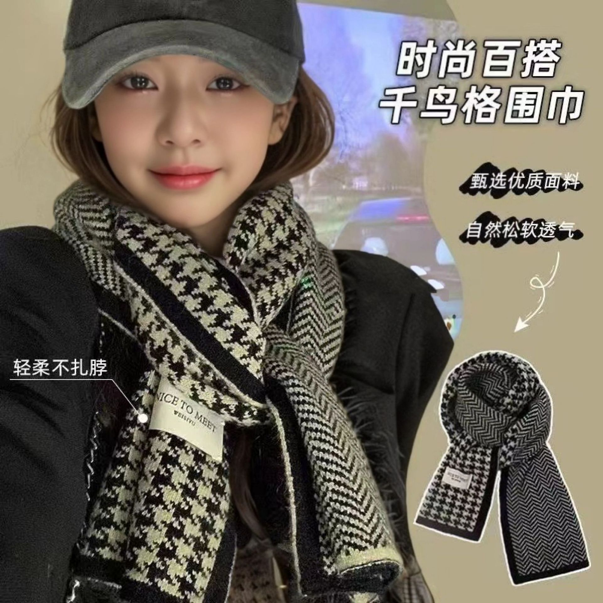 春と秋の新型千鳥格のニットのマフラーの男女は同じです。