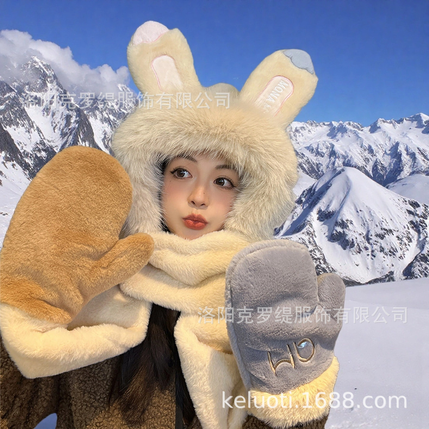 かわいいウサギの耳の帽子の3つのセットの秋冬のベルベットの厚い保温の毛の帽子の自転車の防風の防寒の帽子