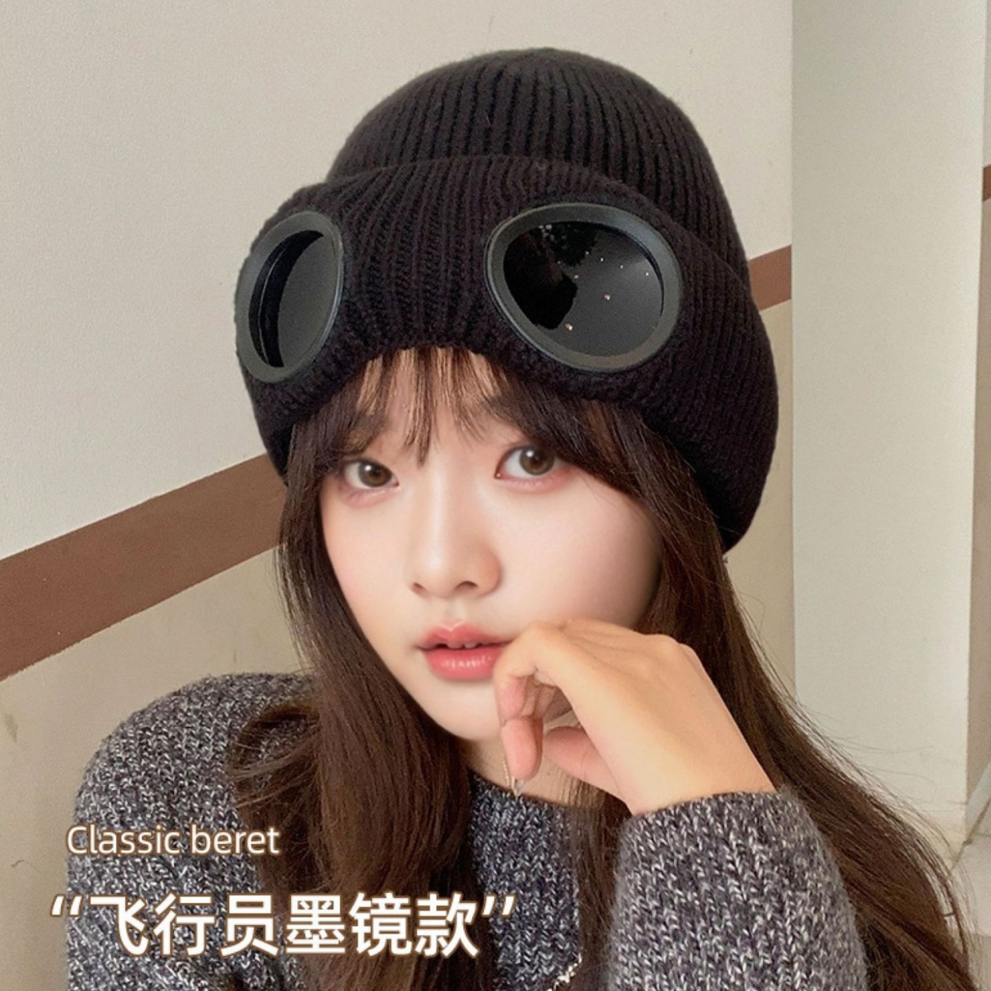 秋冬の男性と女性のベルベットの厚みのあるニット帽、防寒ゴーグル、ウールの帽子、カップルのスキー包頭帽子、トレンディなトレンド