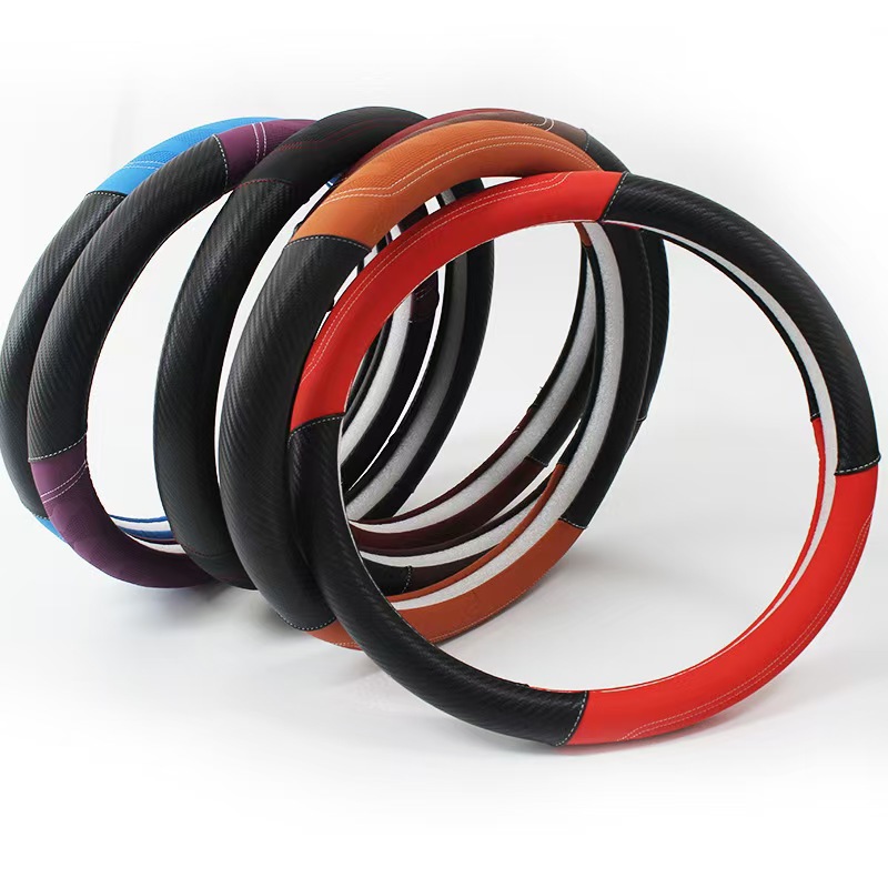 ステアリングホイールカバークロスボーダー新車ビジネスカーボンファイバースポーツスタイルインナーリング弾性バンド弾性レザーハンドルバーカバー