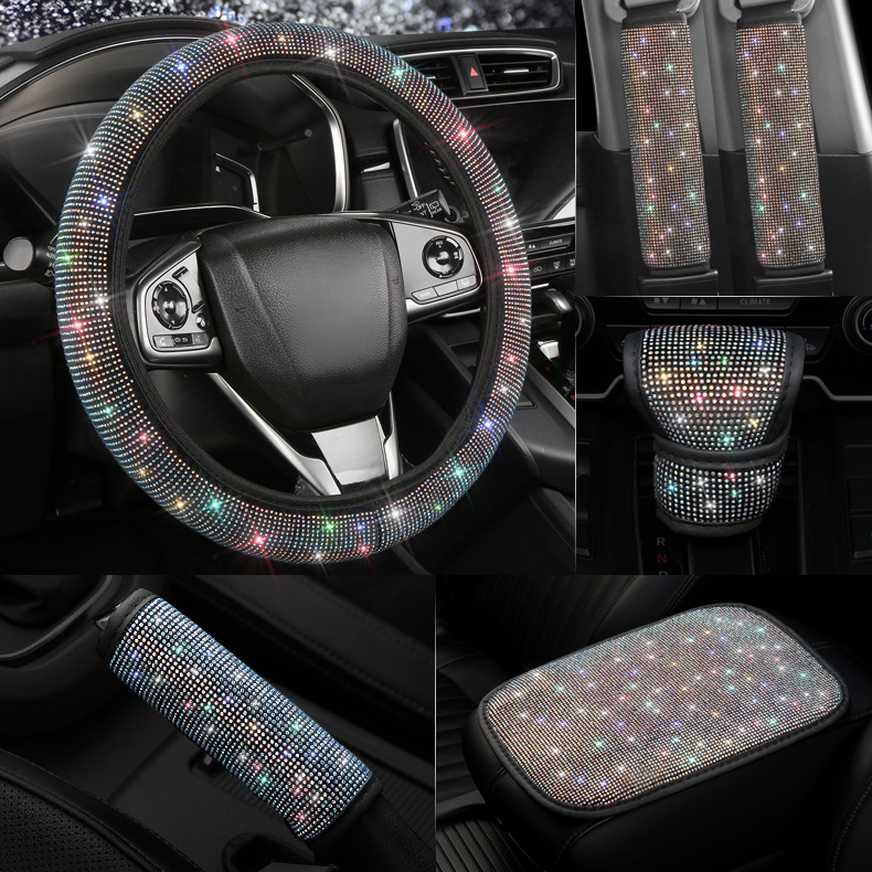 オールシーズン対応のダイヤモンド付きステアリングホイールカバー、夏の女神スタイル、ダイヤモンド付きのファッショナブルな車内用品、クロスボーダー卸売