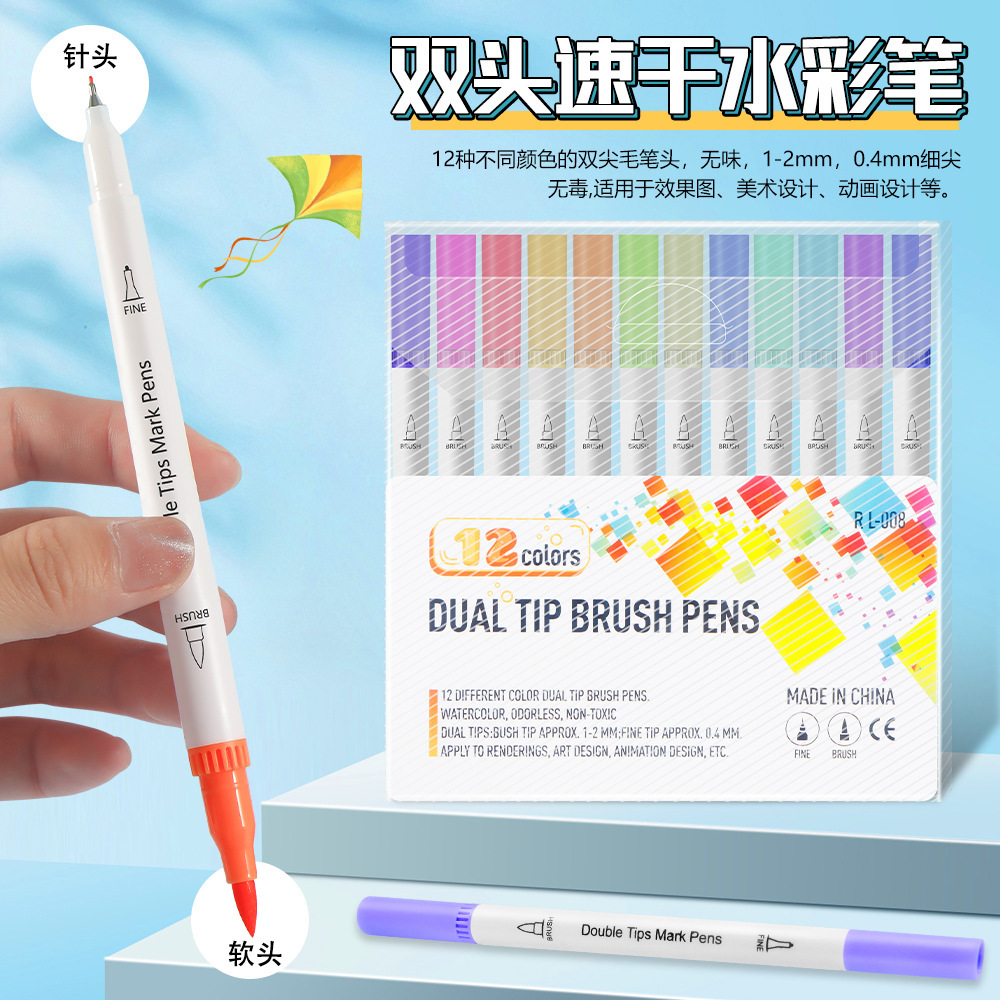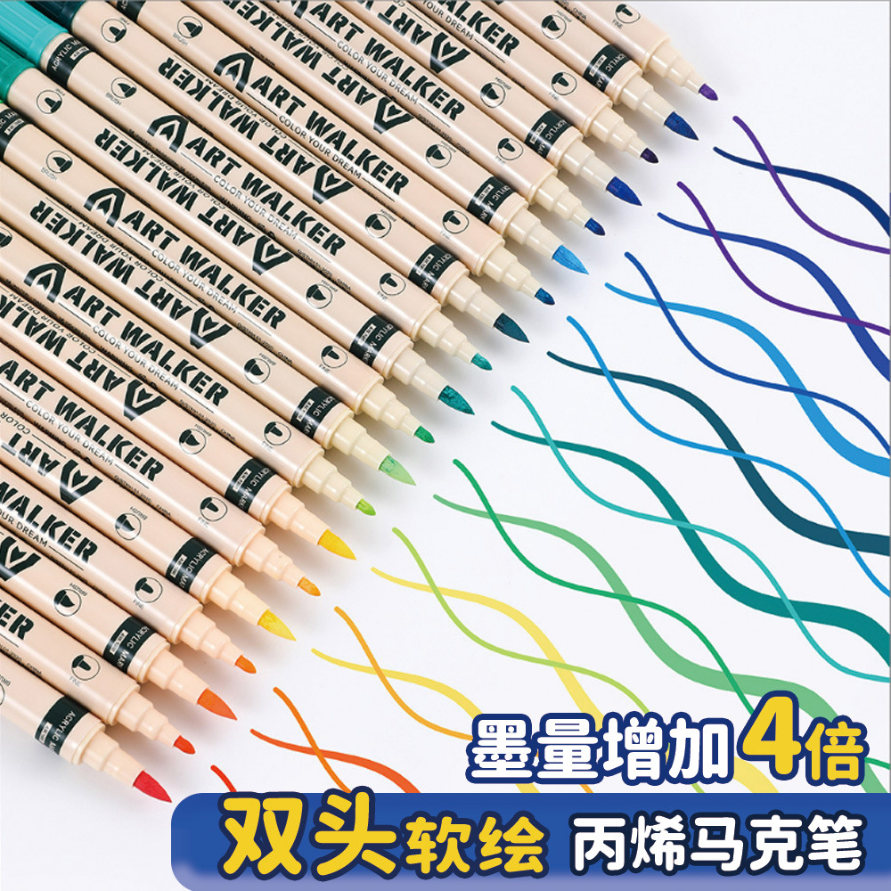 クロスボーダー热い贩売ダブルヘッドアクリルマークペン子供絵画水彩画ペンマークペンセットソフトハード头涂りペン