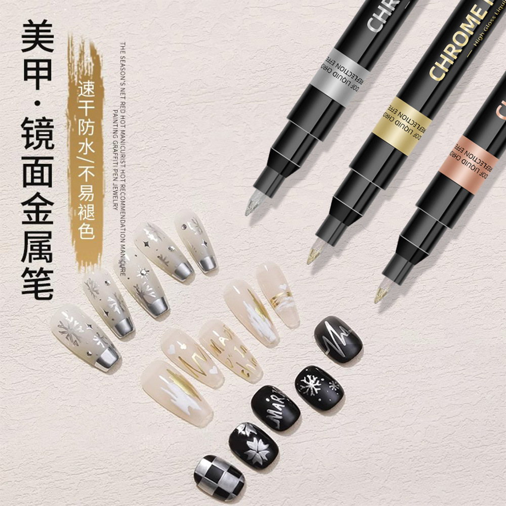 アマゾンの人気金属クロムメッキペンのモデルは、光沢のある金属ペンのネイルアートを塗ります。