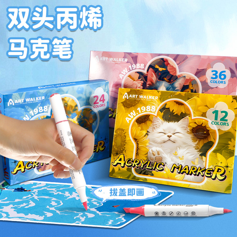 ART正規品ダブルヘッドアクリルマークペン子供絵画セット透けない色畳むことができます水性絵画ペン卸売
