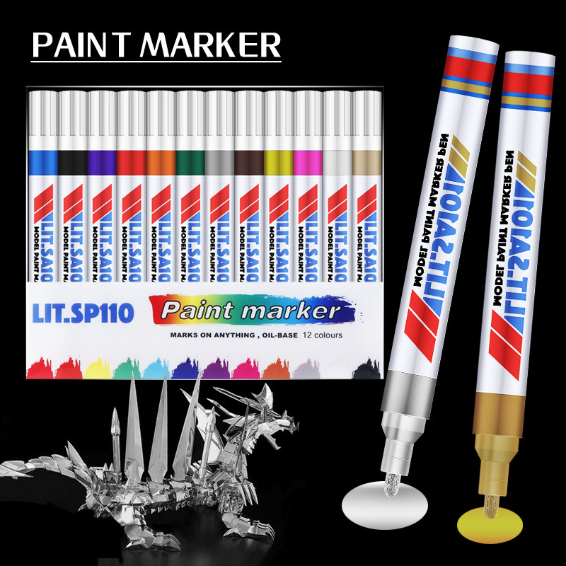 ペイントペン12本、マーカーペン、ステンレス塗装ペン、バルブ油性ペン、色落ちしないペイントオイルペン、車の補修ペン