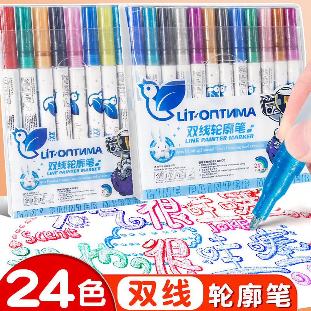 クロスボーダー人気カラー二重線輪郭ペンDIY手帳ペン彩色金属ペンクリスマスカード輪郭マーカーペン