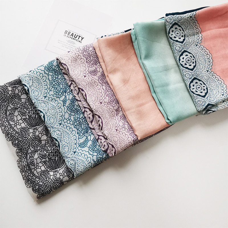 綿麻スカーフ 夏用 薄手 グラデーションカラー レーススカーフ 6色展開 バリヤーシュール特大スカーフ 卸売対応