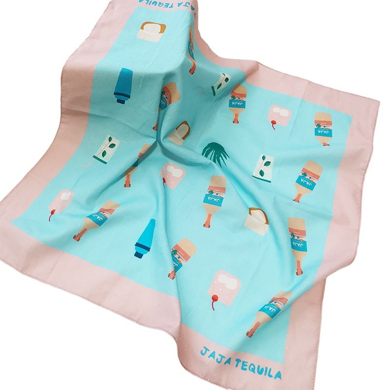 オーダーメイドの漫画の図案の綿のスカーフの小さいロットのデジタルは綿のハンカチを噴き出して頭巾に乗ります。