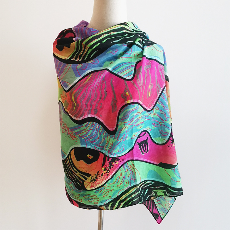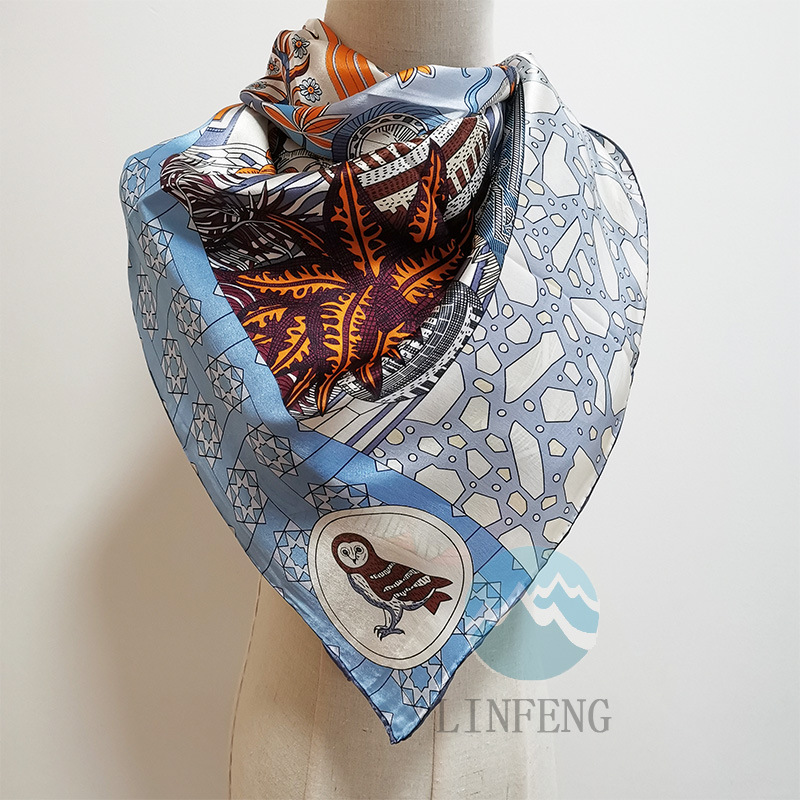 カスタムシルク女性シルクスカーフ高級手作りカール桑シルクスカーフカラーデジタルプリントスカーフ