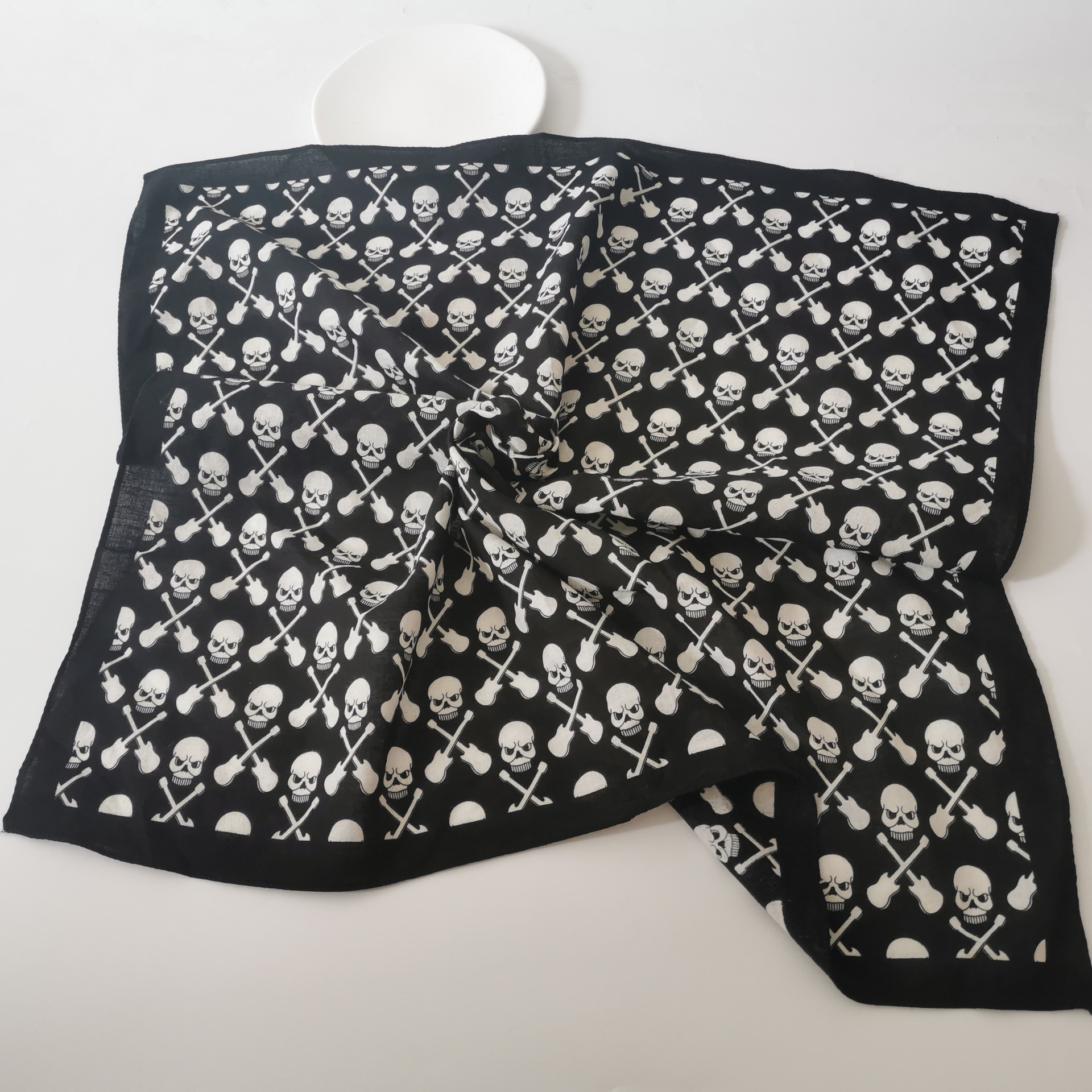 アメリカのヒップホップの白黒の頭蓋骨の綿のスカーフを注文して、頭巾の両面に純綿のスカーフを印刷します。