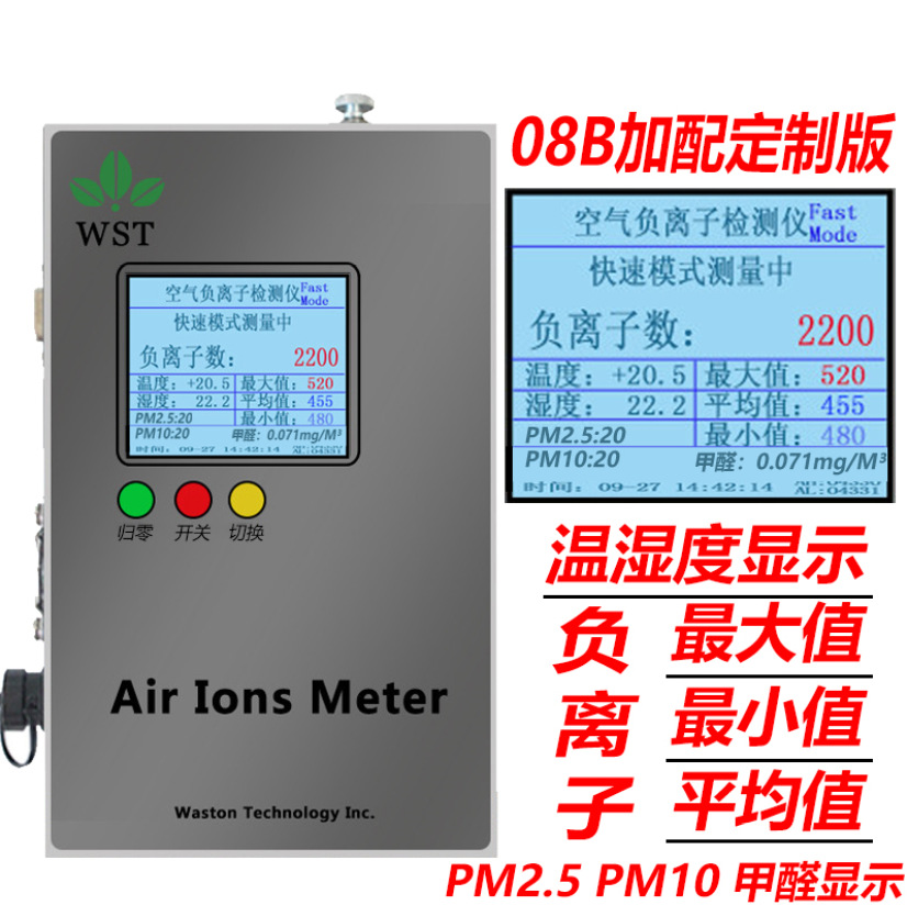 WST-08B加装改造版マイナス酸素イオン検出器ホルムアルデヒド、温湿度、PM2.5/PM10