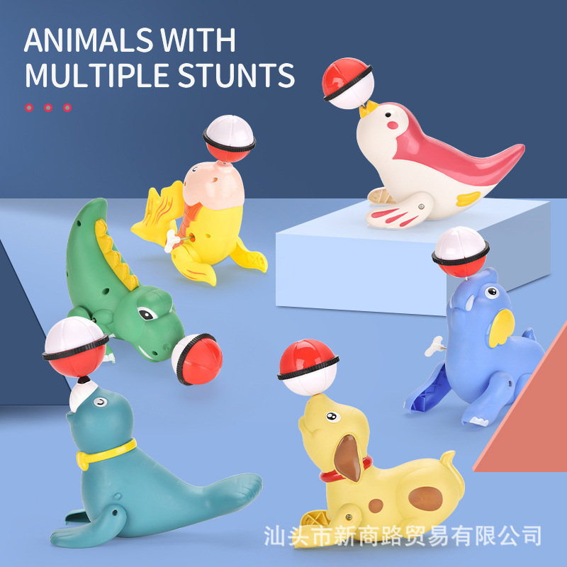 上鎖の小動物は雑技のおもちゃの漫画の恐竜の小さい鯉のぜんまいのトップボールの小さい贈り物の夜市の露店のおもちゃを遊びます。