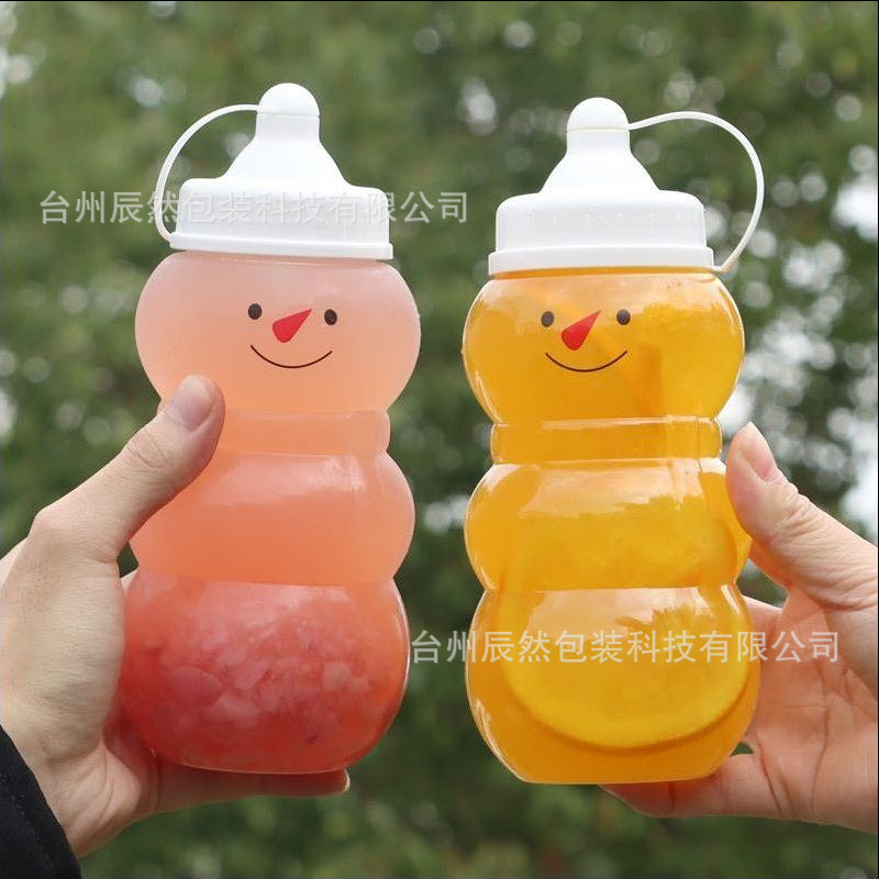 新しい透明な500ml雪だるま飲料瓶クリエイティブ哺乳瓶クリスマス使い捨てジュース瓶と帽子の周り