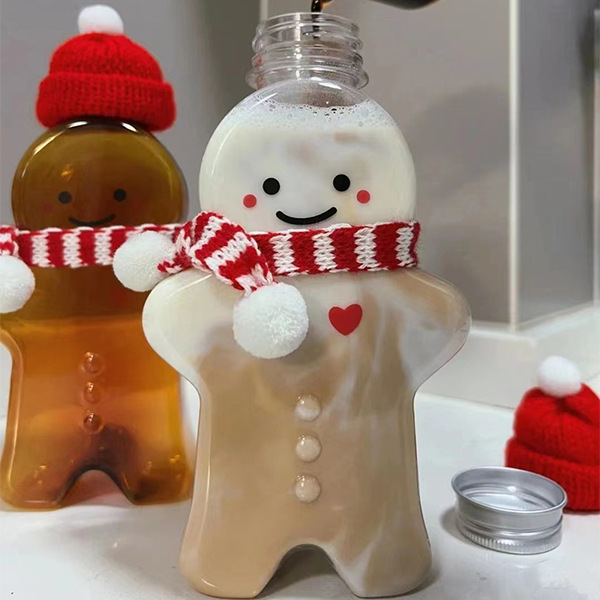 500mlクリスマス漫画ジンジャー人哺乳瓶petかわいいミルクティーボトル