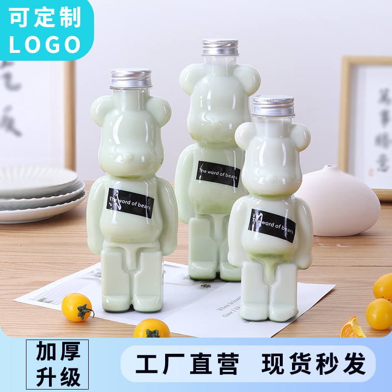 ネット赤暴力熊哺乳茶瓶400ml 500ml 700ml使い捨てpet透明ジュース瓶熊塑
