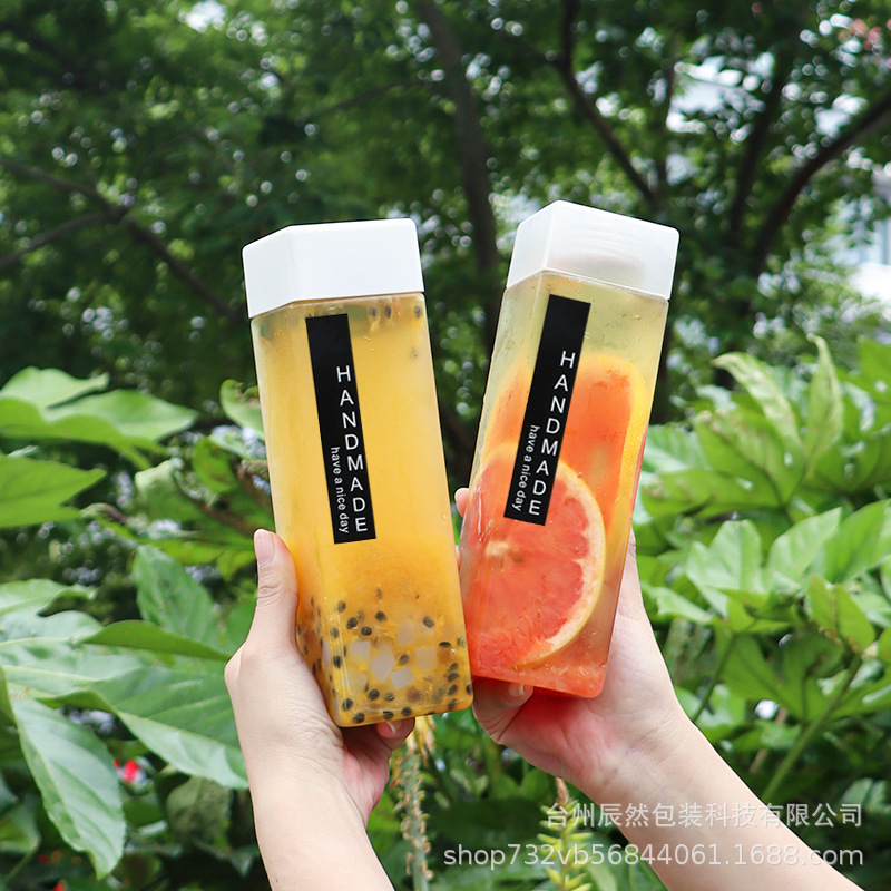現物卸売り使い捨て500ml四角い飲料ミルクティージュース瓶、petミルクティー瓶