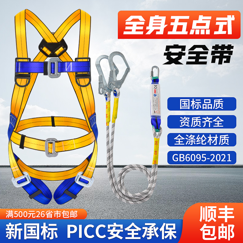 全身5点式安全ベルト高所作業国標双フック安全ロープセット工事現場電気技師落下防止器