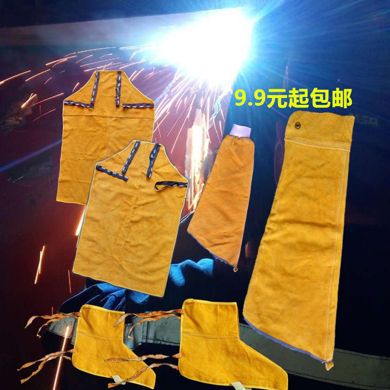 電気溶接エプロン足保護袖カバー溶接工服牛革熱防止耐高温防飛散労働保護断熱耐摩耗性反着服