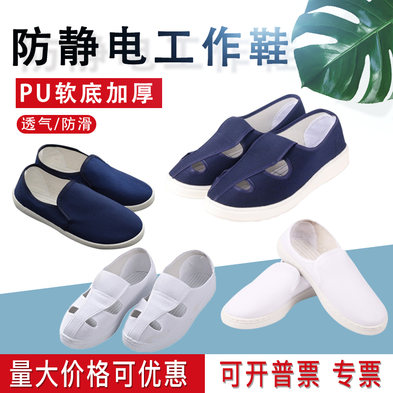 静電気靴ソフト底クリーン工場静電気防止作業靴男夏通気四穴キャンバスネット靴女厚