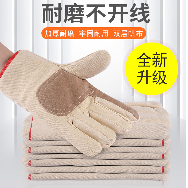 二重帆布厚手手袋労働保護耐摩耗作業耐高温防熱男女防電溶接用nc旋盤用