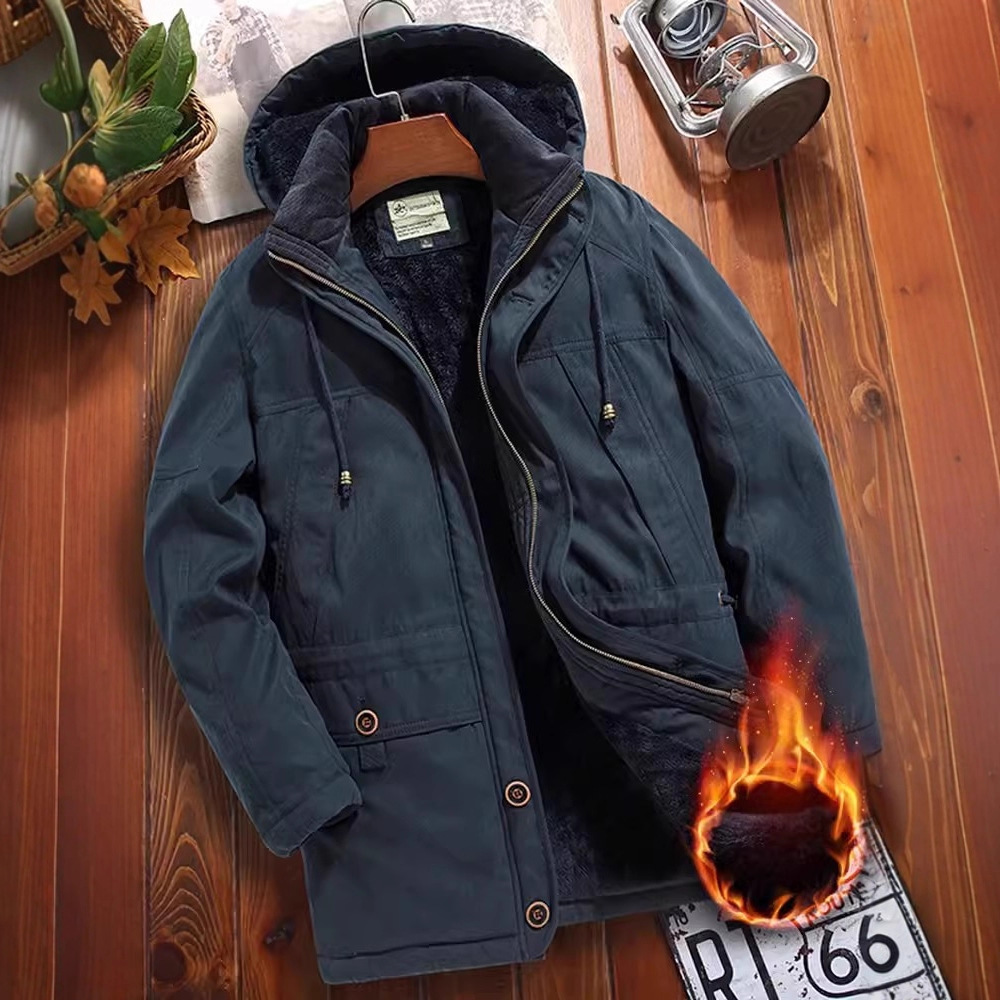 冬の男性の綿の服の中の長いタイプのコートとベルベットの厚い保温カジュアルな綿の服のファッションの中年の綿の上着のファッション