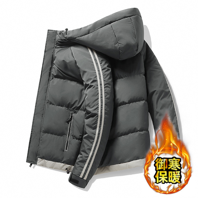 メーカー直売冬新型カジュアルメンズ韓国版純色保温綿服ファッションファッションストライプ帽子付きコート