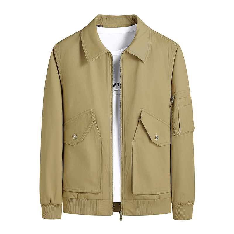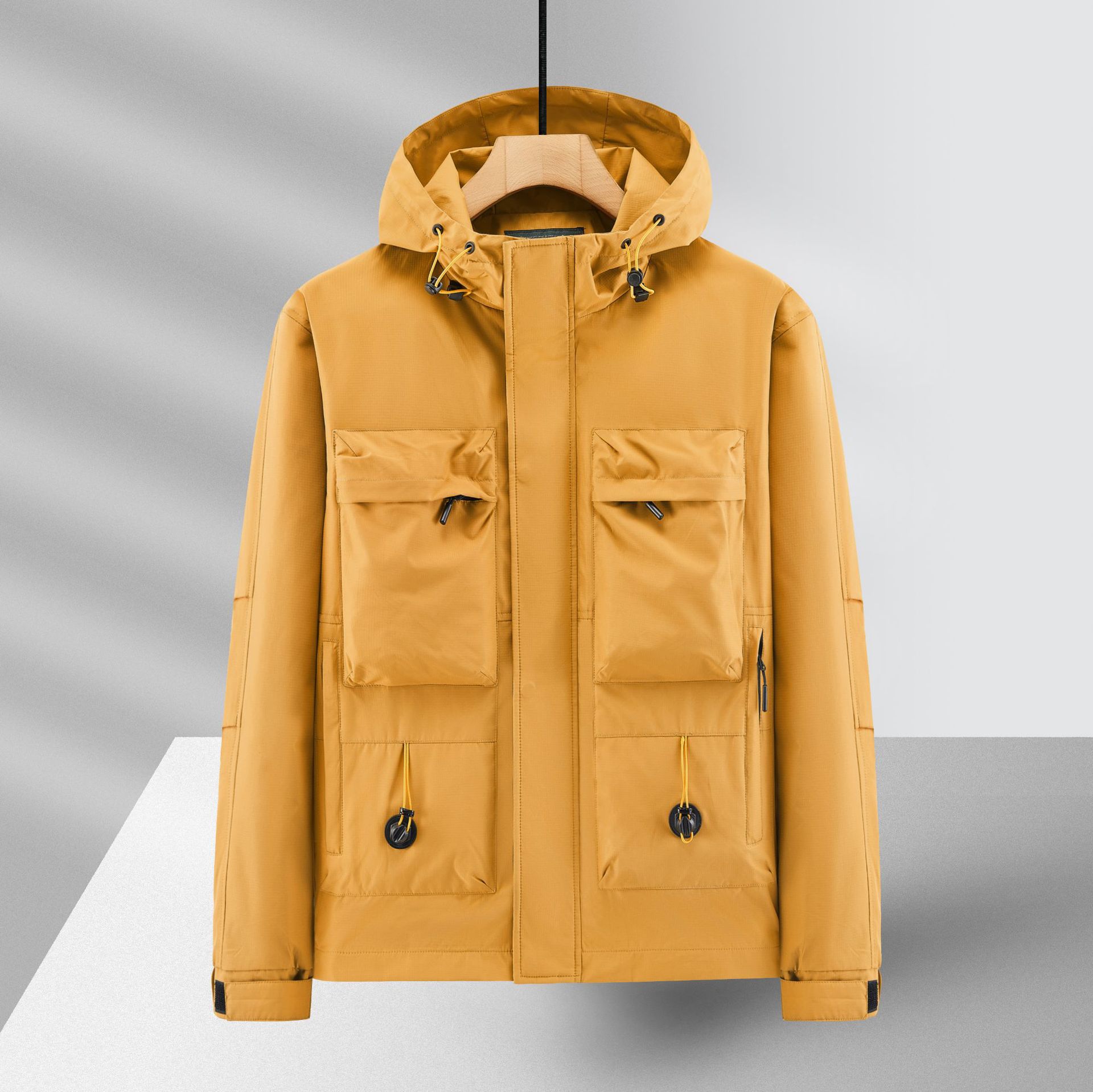 中年男性ジャケット秋ジャケット男性用純綿水洗いゆるい高品質ハード漢服多ポケット工装コート
