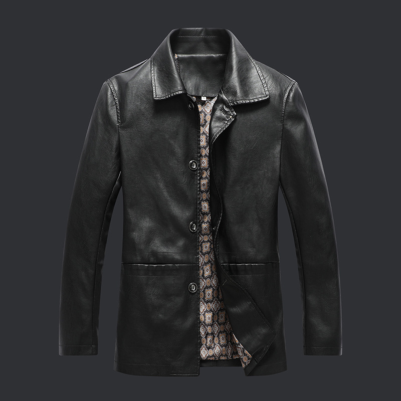 2023春秋の新型中高年の紳士服の皮服のジャケットの男性のpuの皮服のコートのお父さんは単列のボタンのコートを詰めます。
