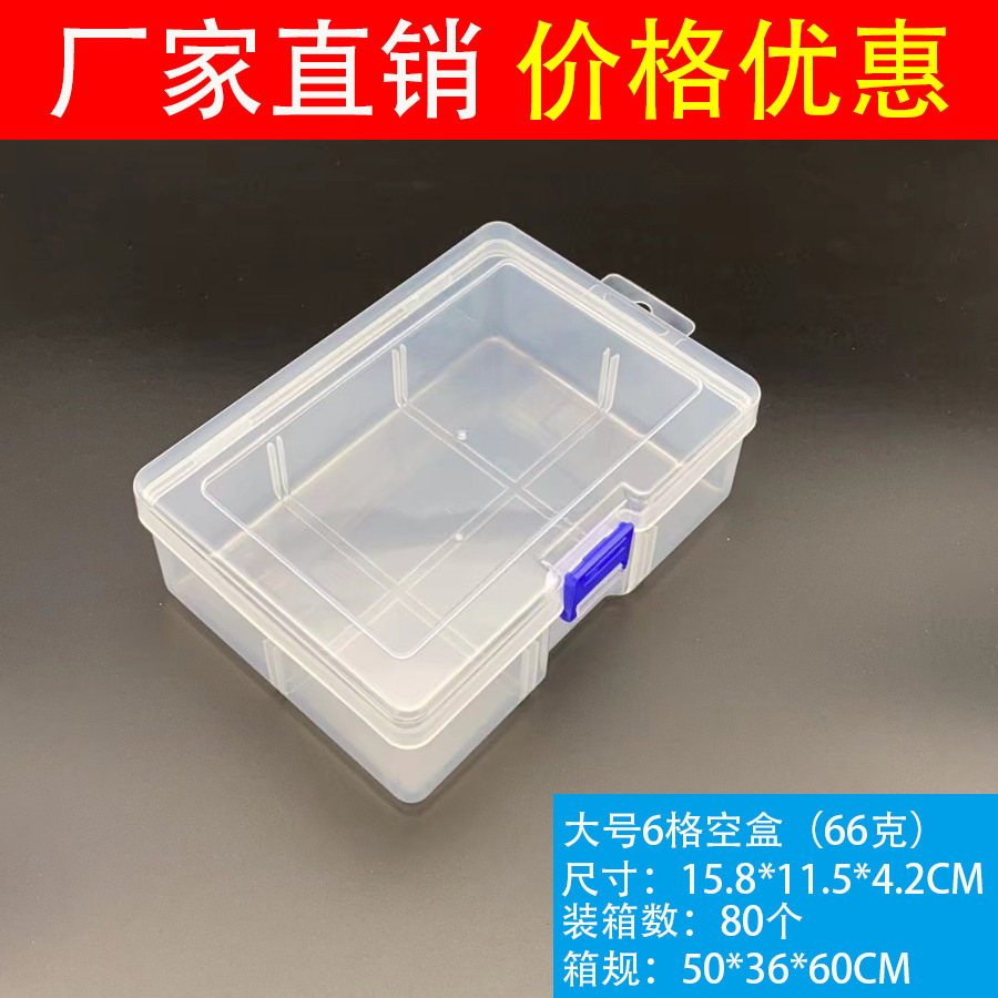大サイズ6格透明プラスチックケース布団固定器収納整理内空ケース蓋付き金物工具整理ケース