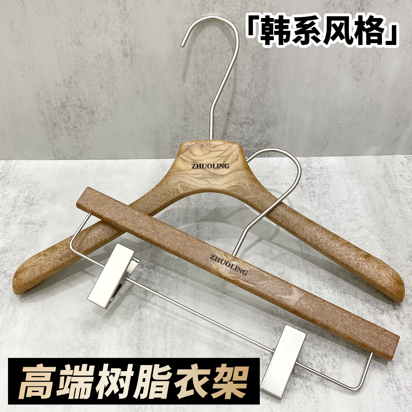 婦人服店樹脂ハンガー新しいハイエンド衣類ハンガー痕跡のない滑り止め木目調ハンガーパンツハンガーウォールナットカラー