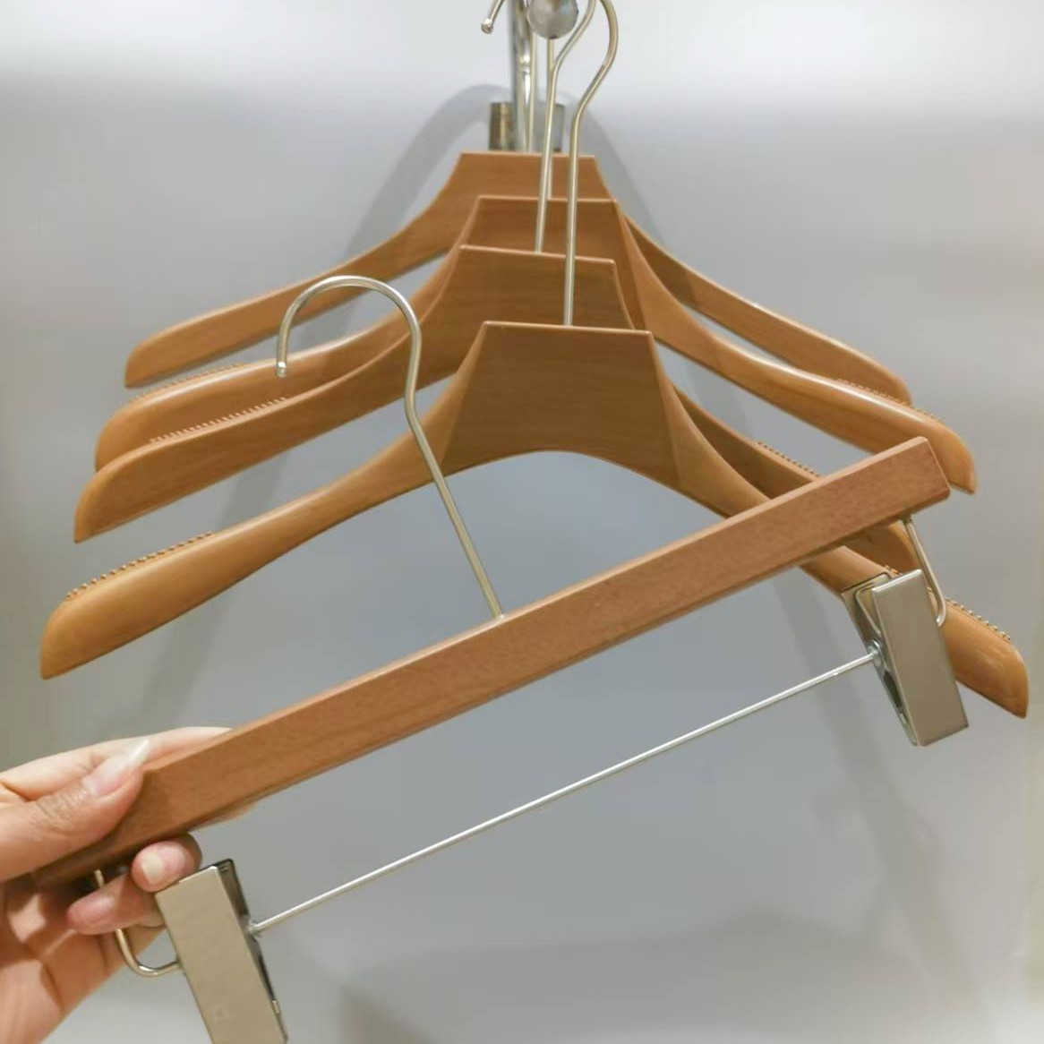 洋服店専用オーク胡桃色手感漆実木滑り止め無痕服掛け木製軽贅沢服掛けズボン掛け