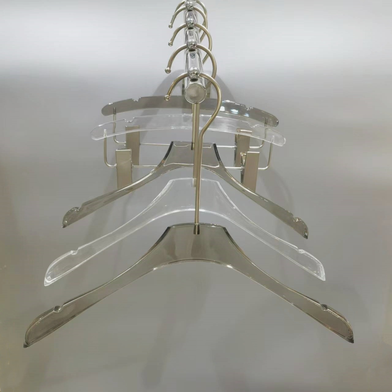 卸売り服装店専用アクリルハンガー透明水晶服吊りズボンクリップ高級無痕ズボンハンガー女装服支え