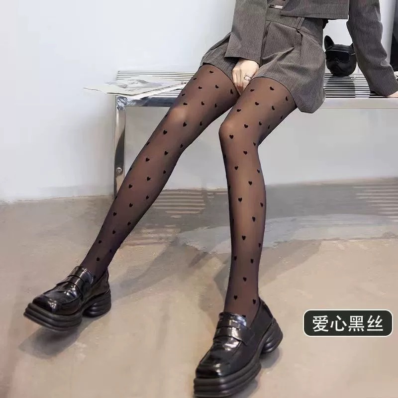 【植毛限定】植毛黒半透明レギンス、黒ストッキング、女性秋冬プラスベルベット素足加工品、水玉模様のラブハート