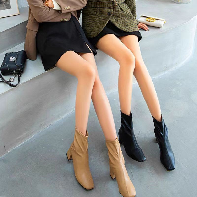 女性用フェイクシースルーレギンス、黒シルク、本物のシースルー、春、秋、冬、ベルベットと厚みのあるワンピース、素足アーティファクト、肌色のアウターウェア