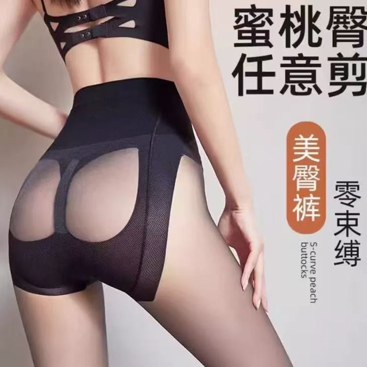 ダブルCピーチヒップ任意カットストッキング女性のヒップ超自然春夏超薄型抗引っ掛かり美尻高透明黒ストッキング