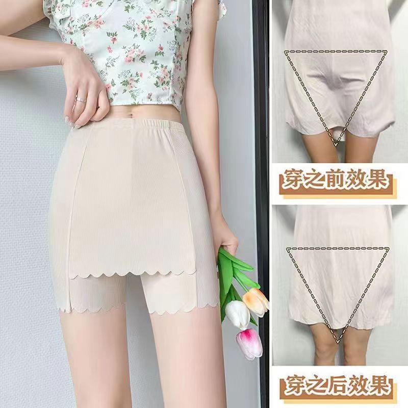 アイスシルク糸安全パンツ波型新しいアイスシルク安全パンツ女性用コンパートメント三角ゾーンをカバー二重層露出防止なし