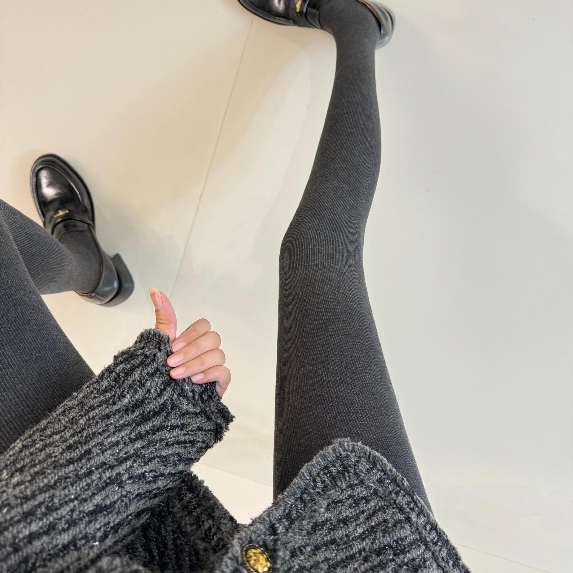 秋冬にぴったりのスリムプラスベルベットグレーレギンス! ~縦縞がスリムで微圧感があり暖かい黒