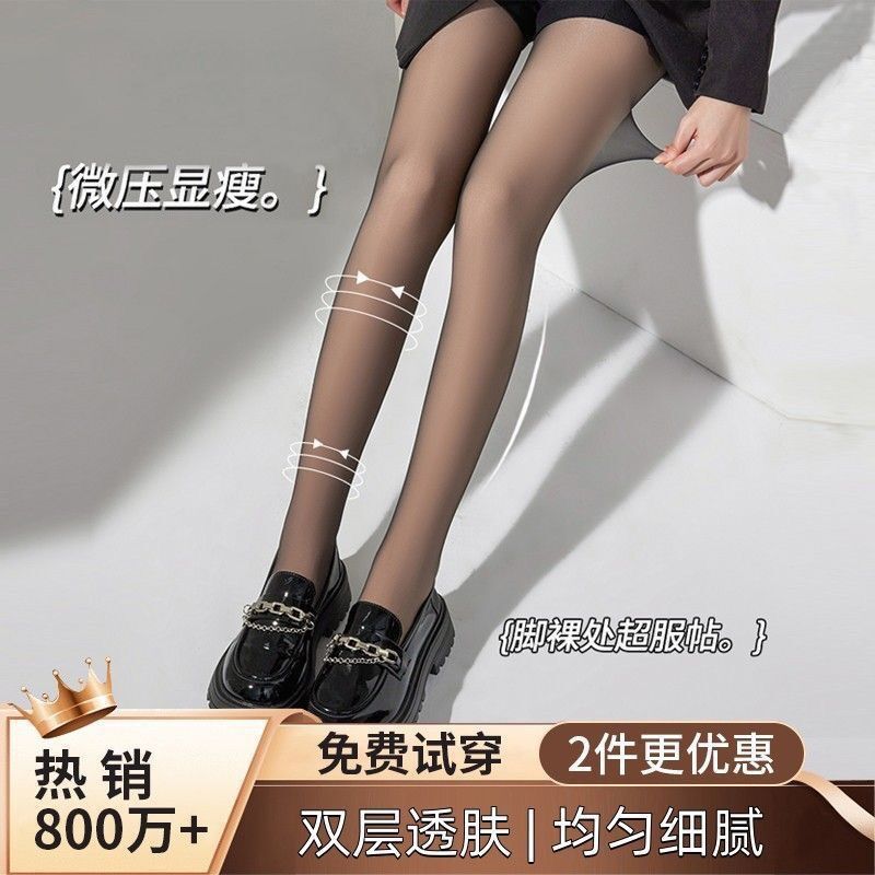 秋冬の女性用クロスボーダー新作大きいサイズスチュワーデスグレーレギンス、偽透明肉プラスベルベット厚みのある透明なオールインワンパンツ、素足