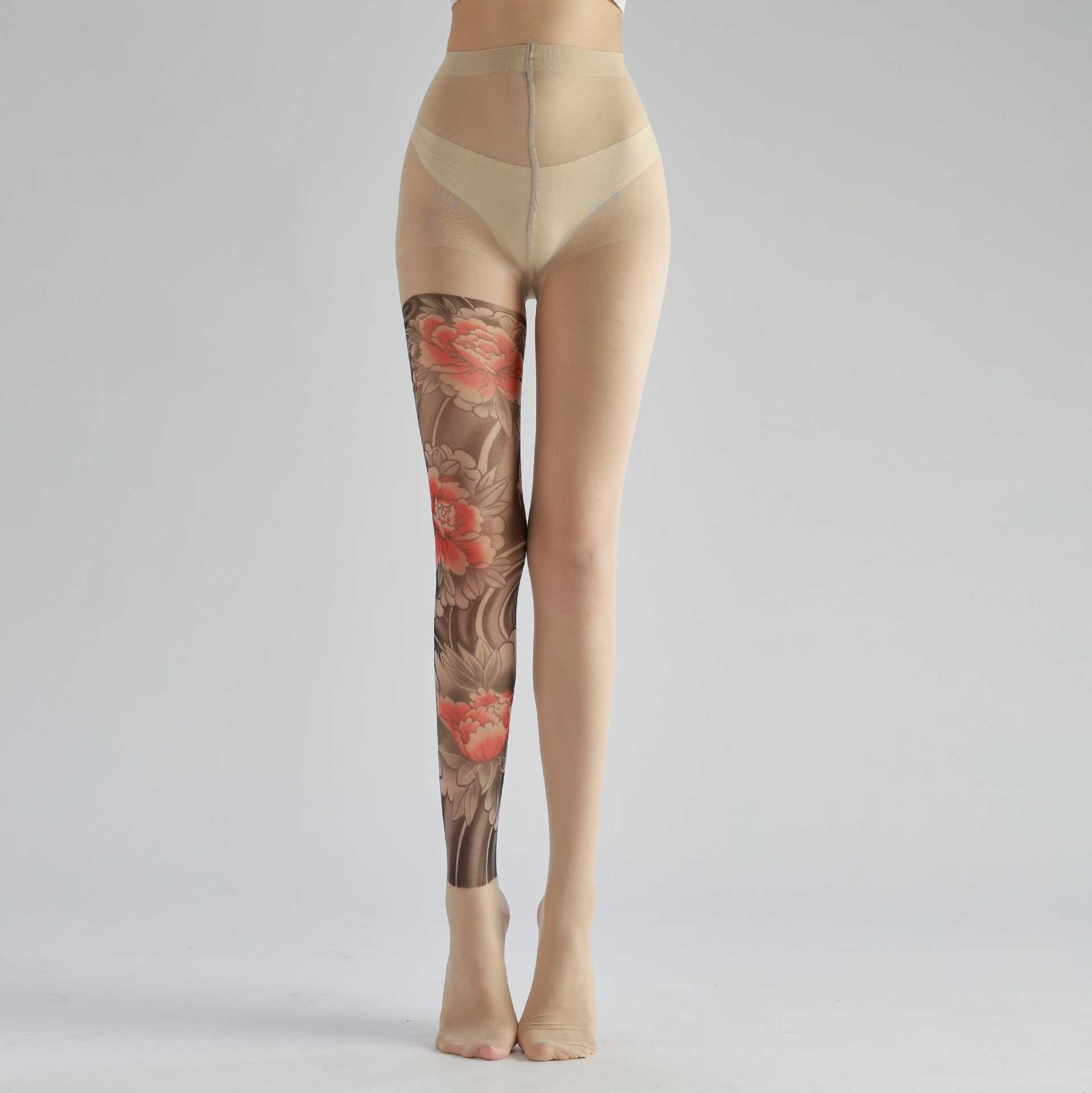 日本の伝統的な花の脚桜タトゥーストッキング男性と女性のカラフルな脚セクシーなストッキングミッドカーフソックスフリーサイズ綿吸汗性