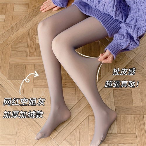偽透肉秋冬透肌外着レギンスとベルベットの女性空姉灰一体ズボンは保温光脚を厚くしてズボンの靴下につながっている