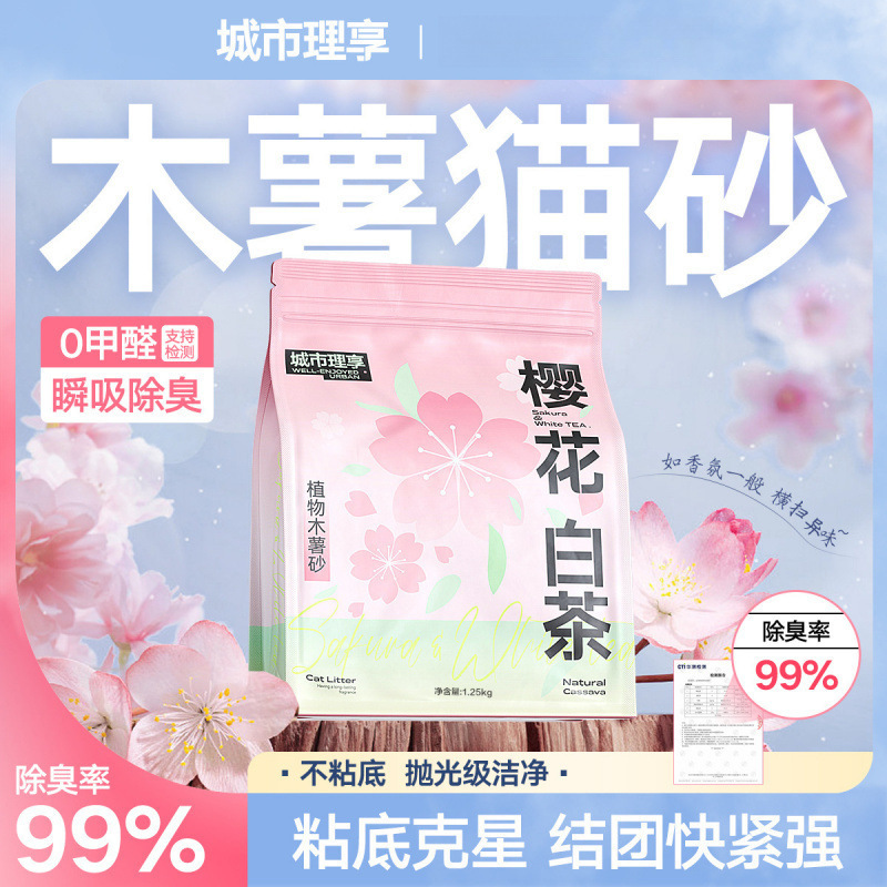 Nianchenglixiang タピオカ猫砂 桜白茶 消臭 ダストフリー 固まりにくい植物猫砂 ノンスティック底 工場直販