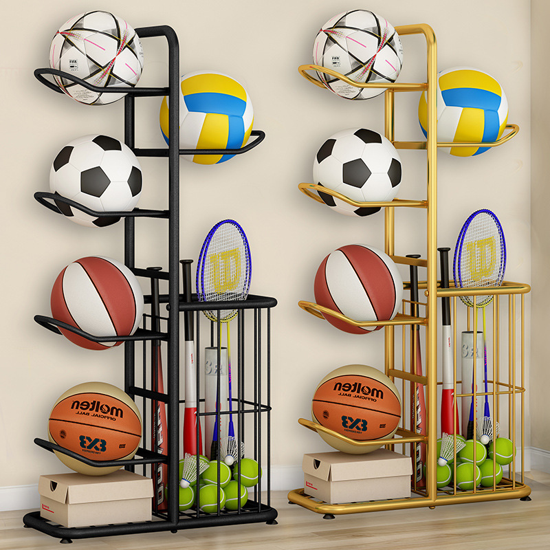 念球類収納棚家庭用室内学校足バレーボールバスケットボールラックトレー多層置物ラック子供収納
