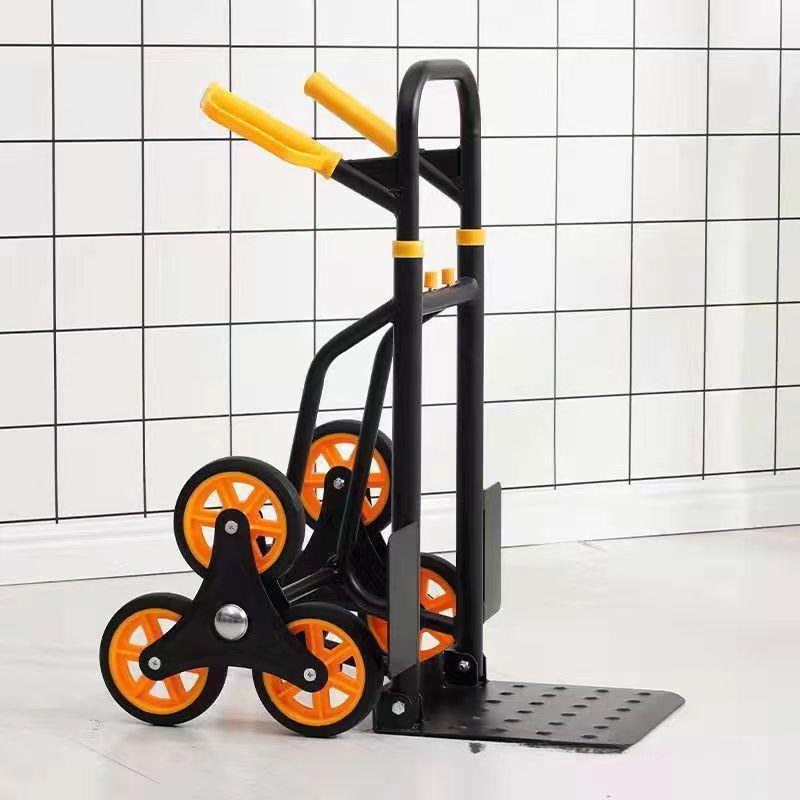 荷物を引いて二階に上がることができる手引き車の引っ越しを考えて、バケツに水を入れて階段を登って車を運ぶ
