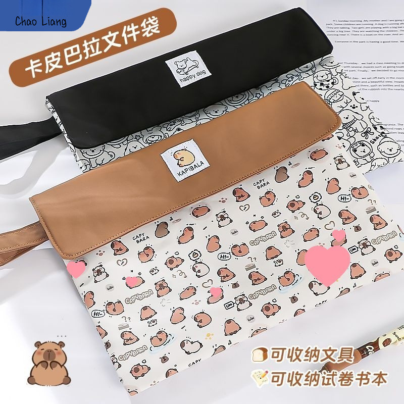 カピバラA4ファイルバッグ磁気吸引ボタン大容量超厚学生防水テスト用紙収納袋アニメ