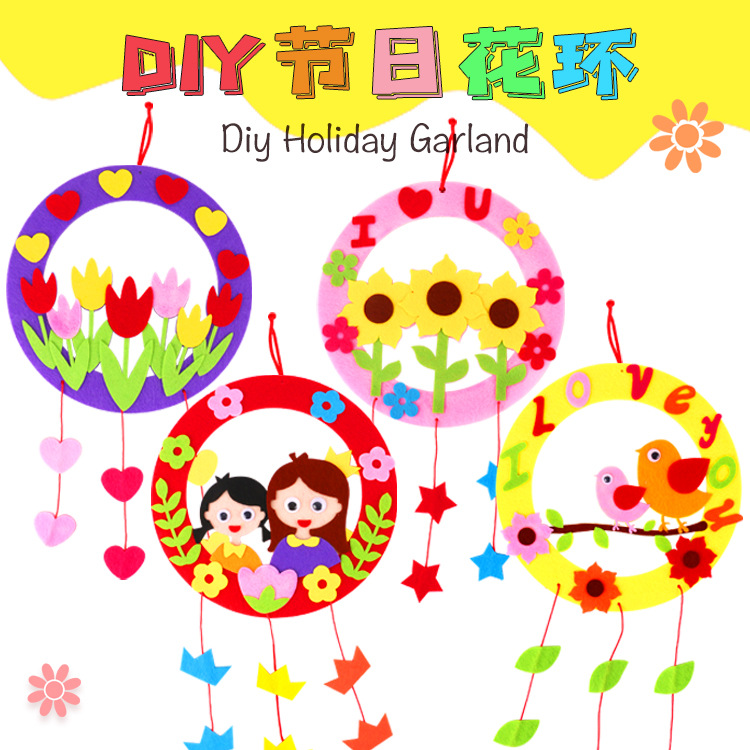 教師の日のプレゼントの不織布の花輪は幼稚園の壁面を飾って子供のdiyの手作りの材料の包みを飾ります。
