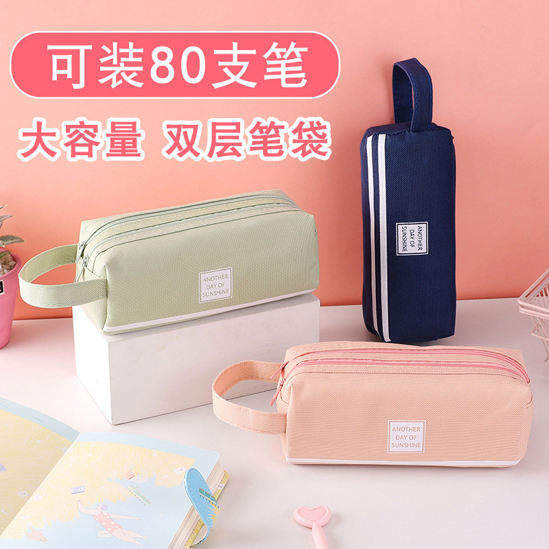 大容量二重キャンバスペン多機能文房具ケース袋クリエイティブシンプル子供小学生鉛筆ケースプレゼント