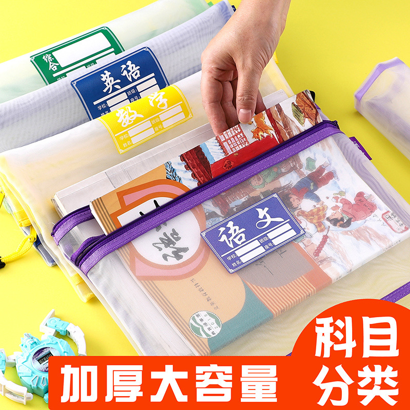 学生科目分類教科書袋透明網糸大容量書類袋二重ファスナーa 4作業学科袋
