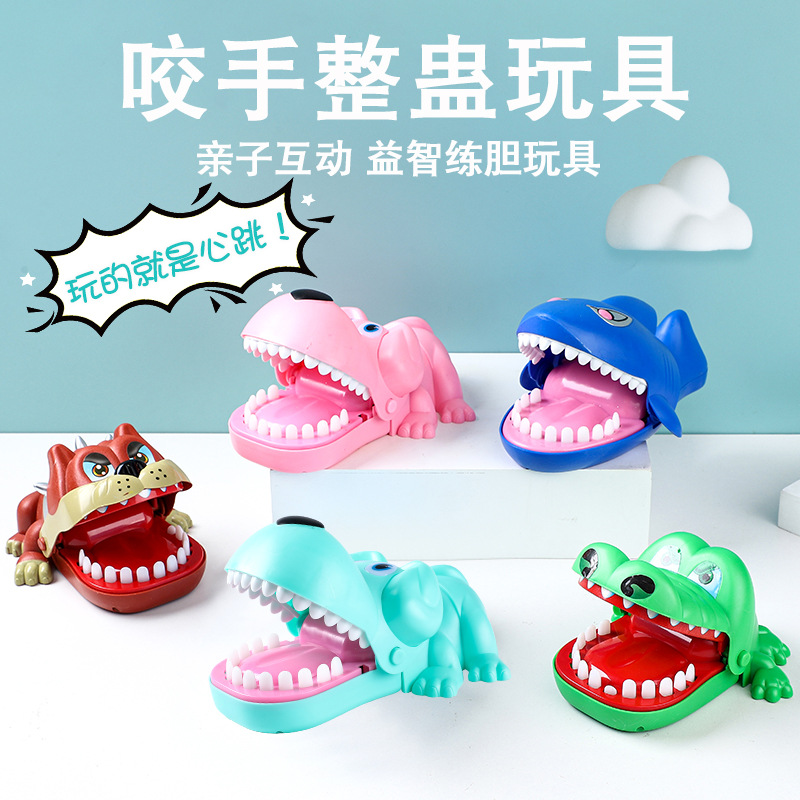 創意的な減圧ワニは指を噛んでおもちゃを整えます。