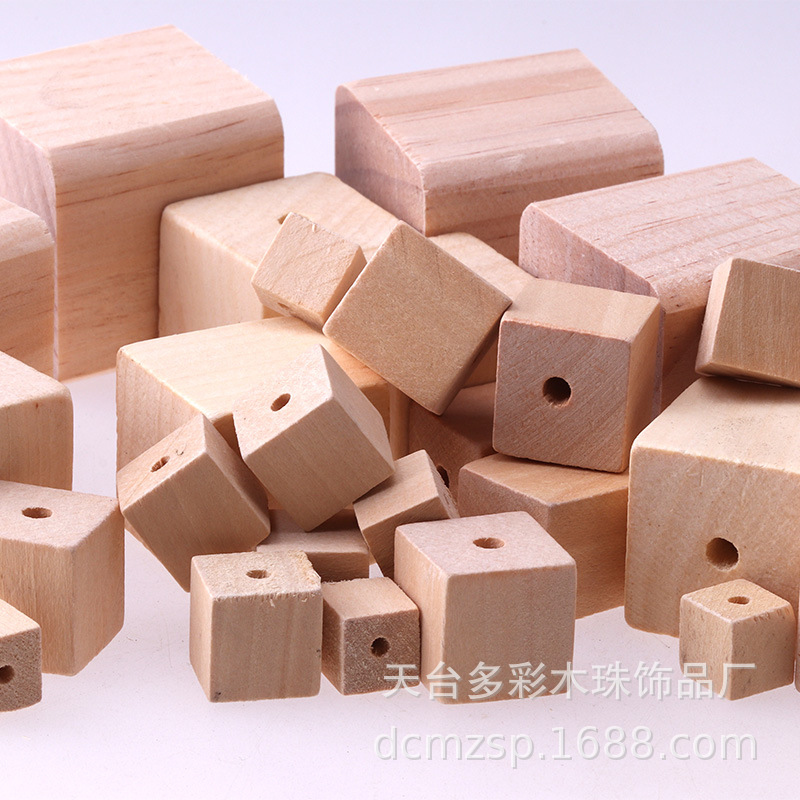 Diyアクセサリーアクセサリー原木色穴付き正方形木製ビーズ正方形ブロック木製ビーズビーズビーズビーズビーズ