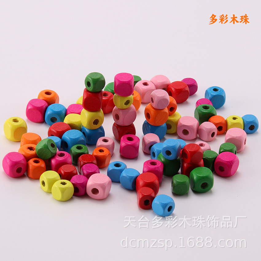 Diyアクセサリービーズ10mmカラー穴付きブロック木ビーズ角型木ビーズ散珠論斤販売